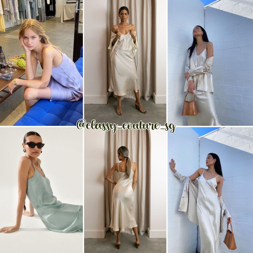 14 Colours Silk Laundry 90s Slip Midi Dress Solid Colours Black Franca Hazelnut Mist Blackberry Fig Dark Earth Women S Fashion Dresses Sets Dresses On Carousell